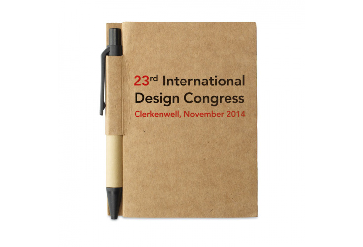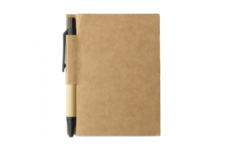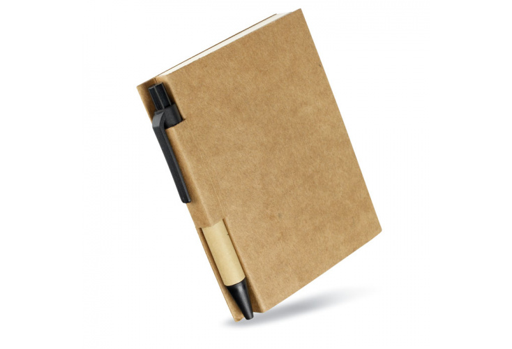 80 stranový kompaktný blok s recyklovaným perom. Modrý atrament.