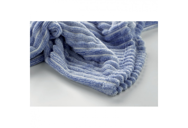 280 gr / m² pruhovaná flanelová deka zo 100% polyesteru. Previazané stuhou s potlačitelné kartičkou.