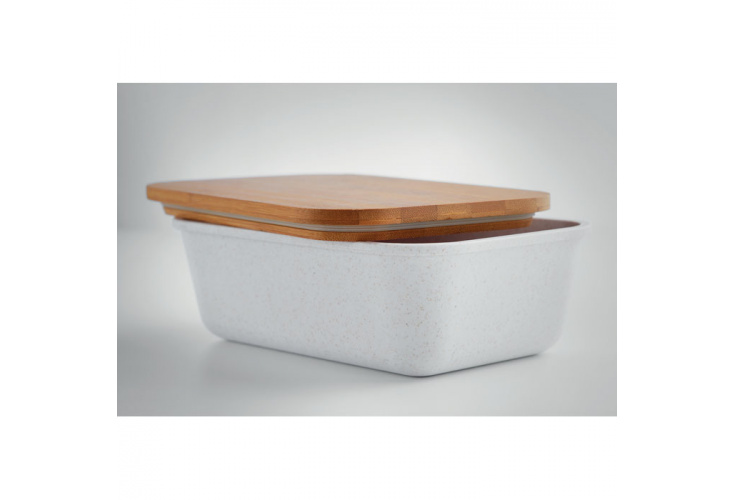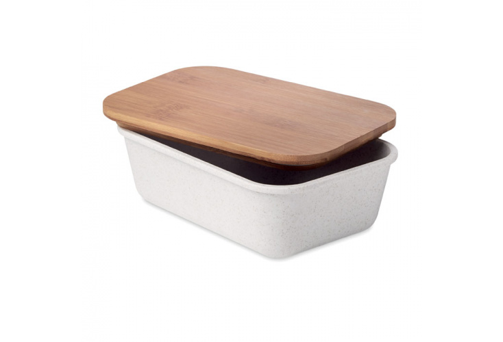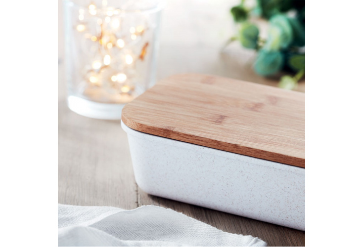 Obedová krabička vyrobená z bambusového vlákna (50%) a PP (50%). Viečko z bambusu.