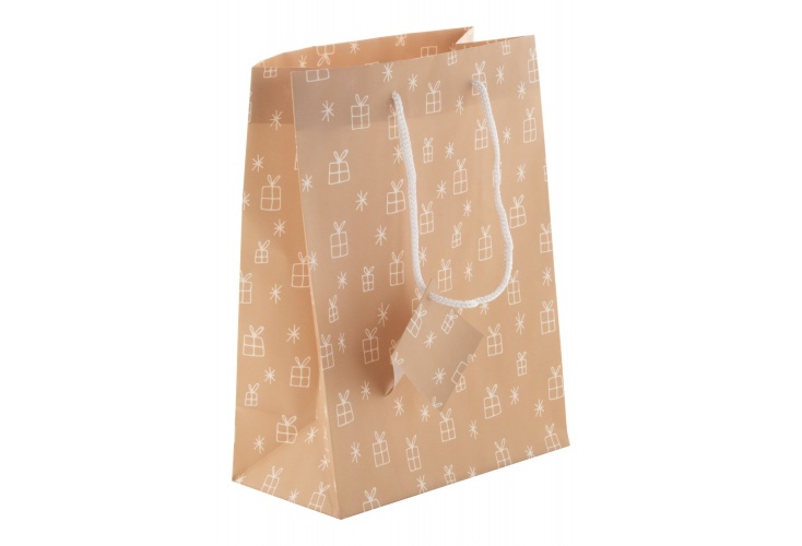 Papierová darčeková taška s matným laminom vo vianočnom dizajnu a s darčekovú visačkou.
