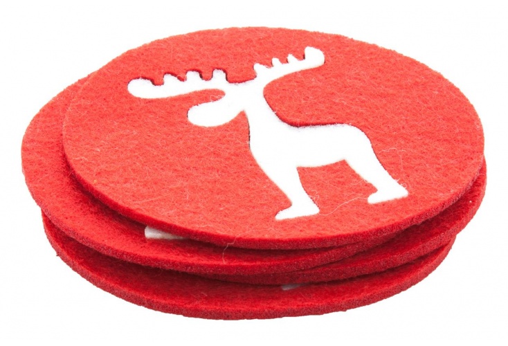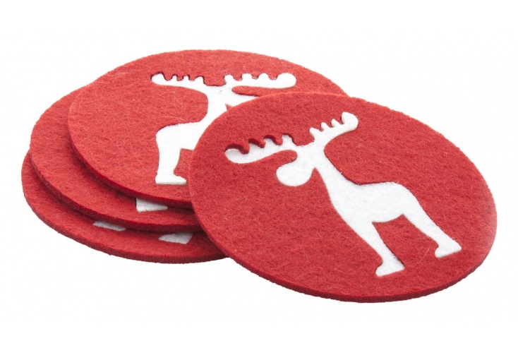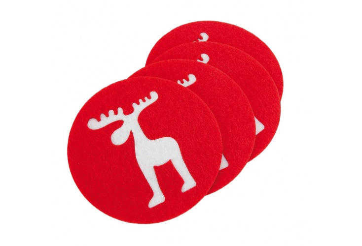 Sada 4 ks tácok pod poháre s motívom soba uprostred. Vyrobené z polyesteru.