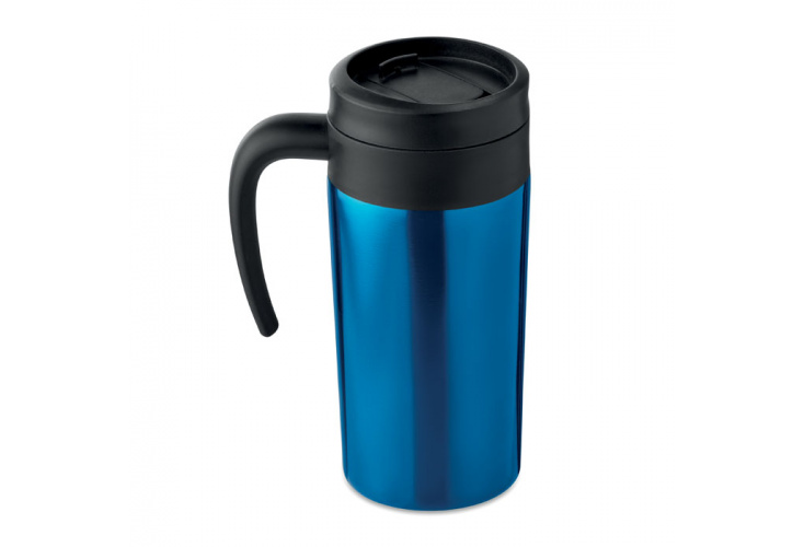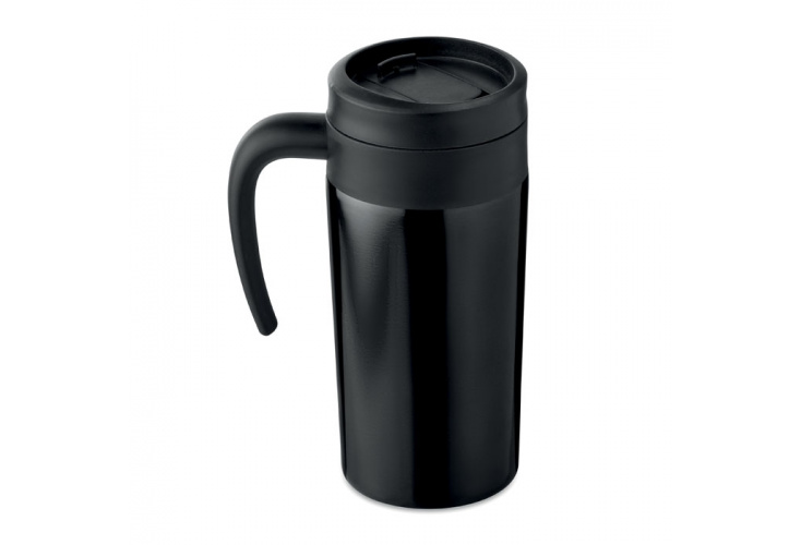 Dvojstenný nerezový hrnček, ktorý netečie. Vnútorná vložka z PP. Objem 340 ml.