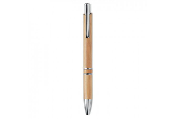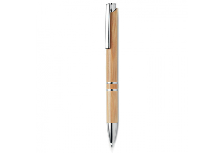 Guľôčkové pero z hliníka s bambusovým telom. Modrá náplň.