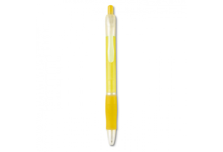Guľôčkové pero z ABS s pogumovaným gripom. Čierna náplň.