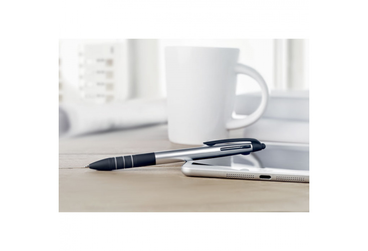 ABS trojfarebná ceruzka sa stylusom. Červený, modrý a čierny atrament.