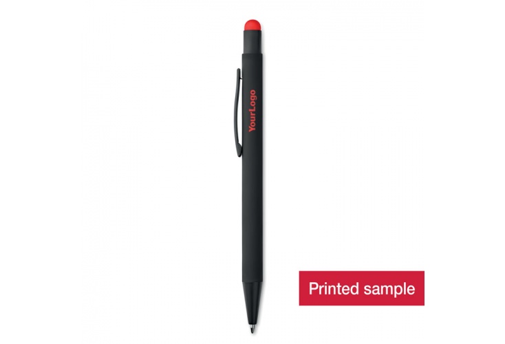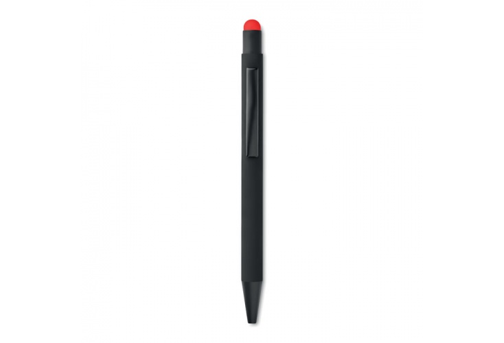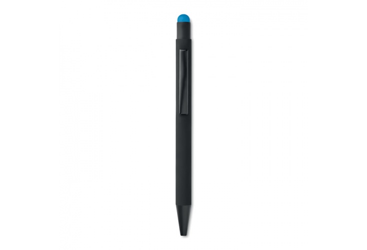 Hliníkové pero so stylusom. Telo po laserovaní svieti rovnakou farbou ako má stylus. Modrá náplň.