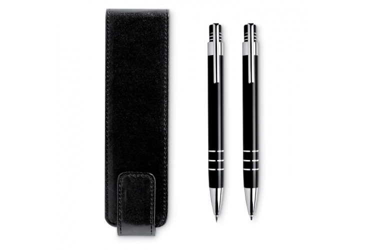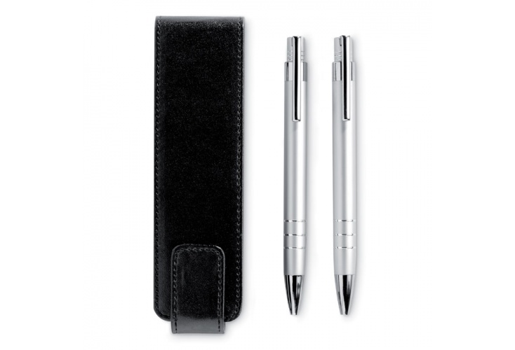 Písacie súprava. Guličkové pero s modrým atramentom a mikroceruzka v hliníkovom prevedení. Dodávané v PU puzdre. Individuálne darčekové balenie.