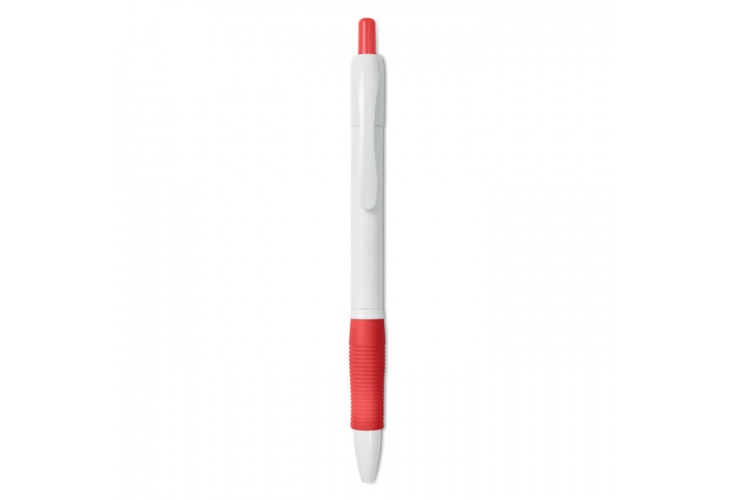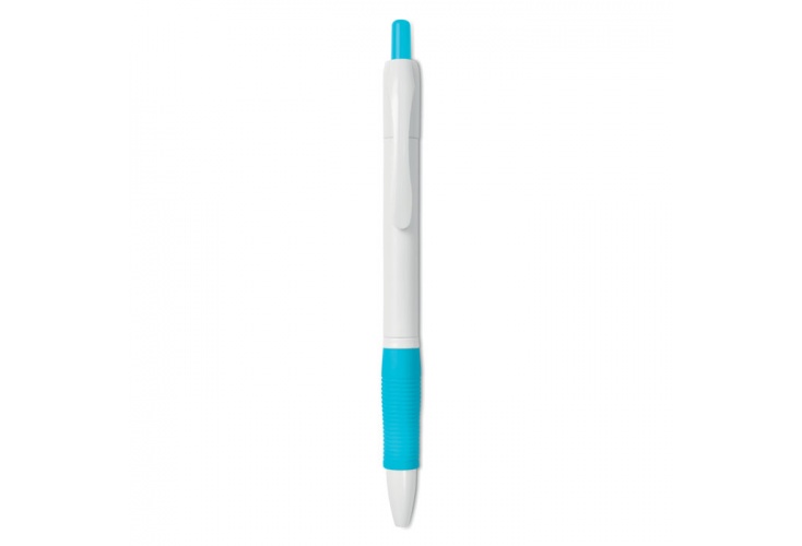 Guličkové pero z ABS s pogumovaným gripom. Modrá náplň.