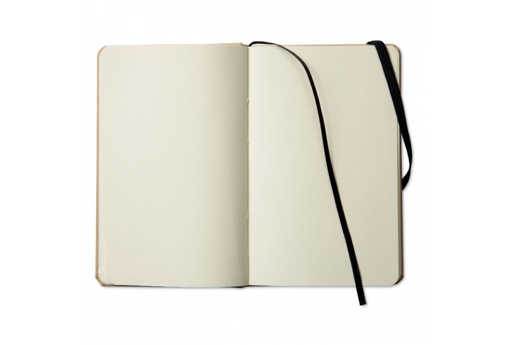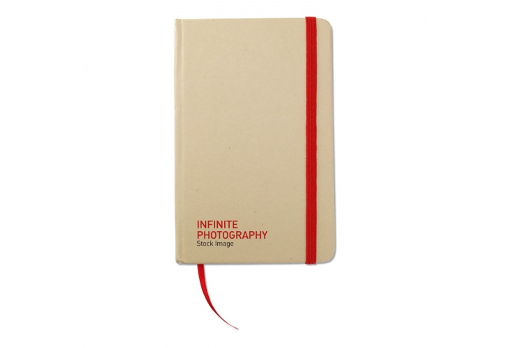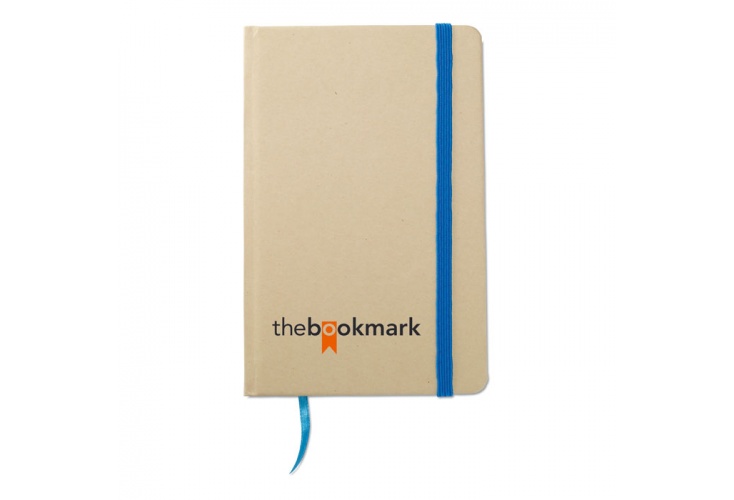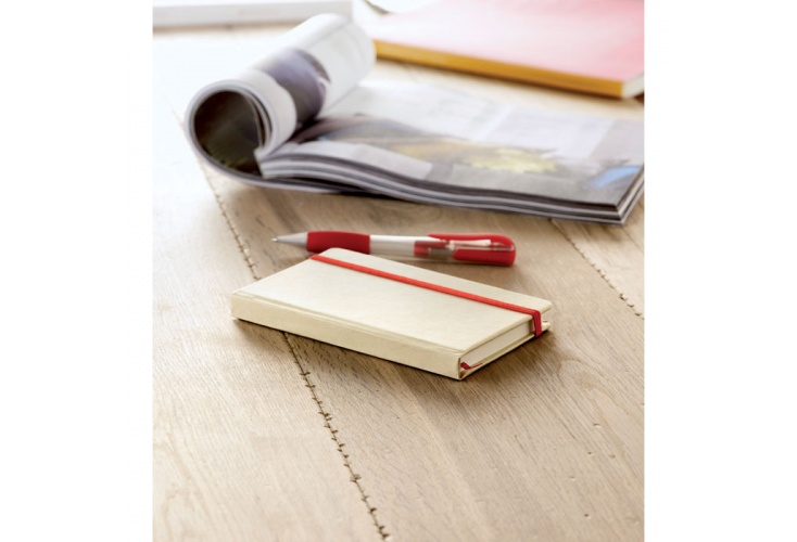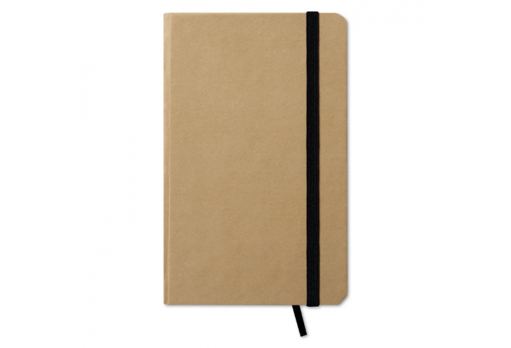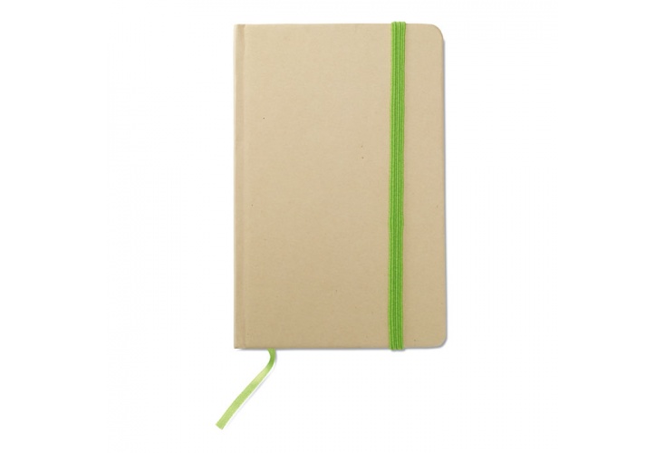 A6 zápisník z recyklovaného materiálu s farebným pásikom a gumičkou. 96 strán