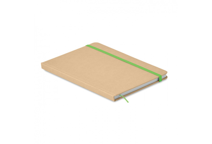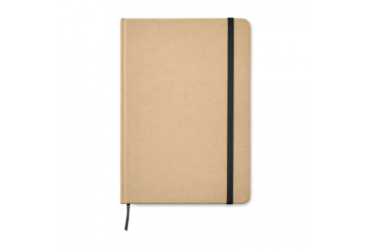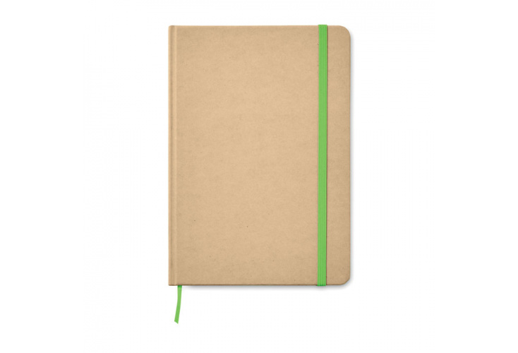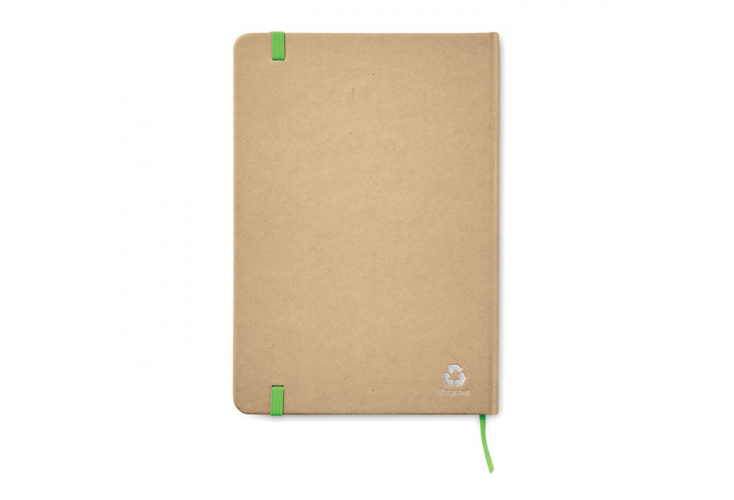 A5 zápisník s doskami z recyklovaného materiálu, 80 linkovaných stránok, farebná záložka a gumička
